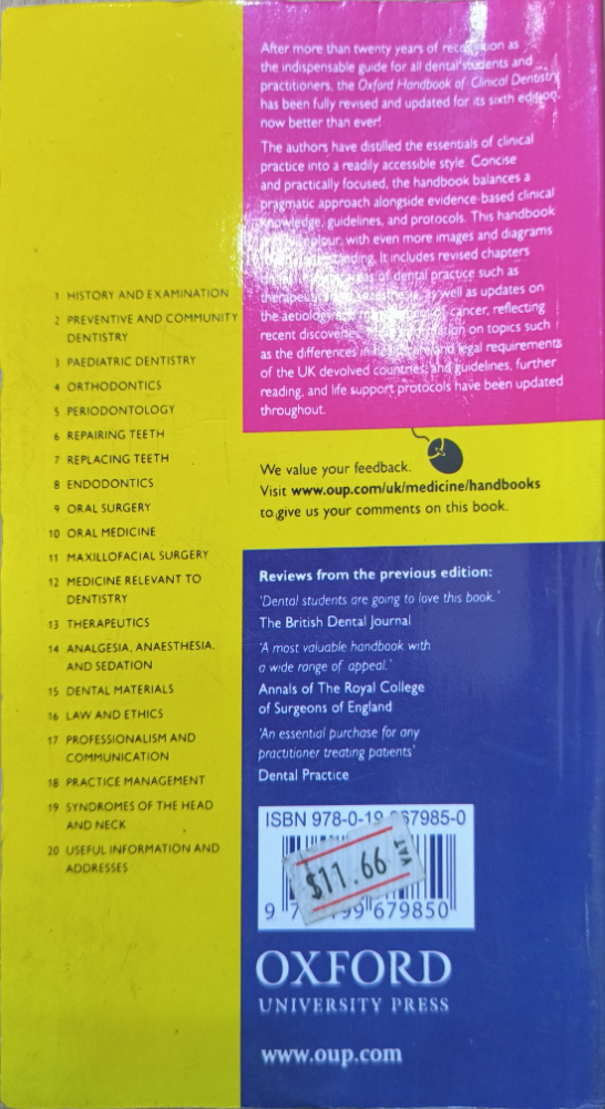 Oxford Handbook of Clinical Dentistry • Oxford University