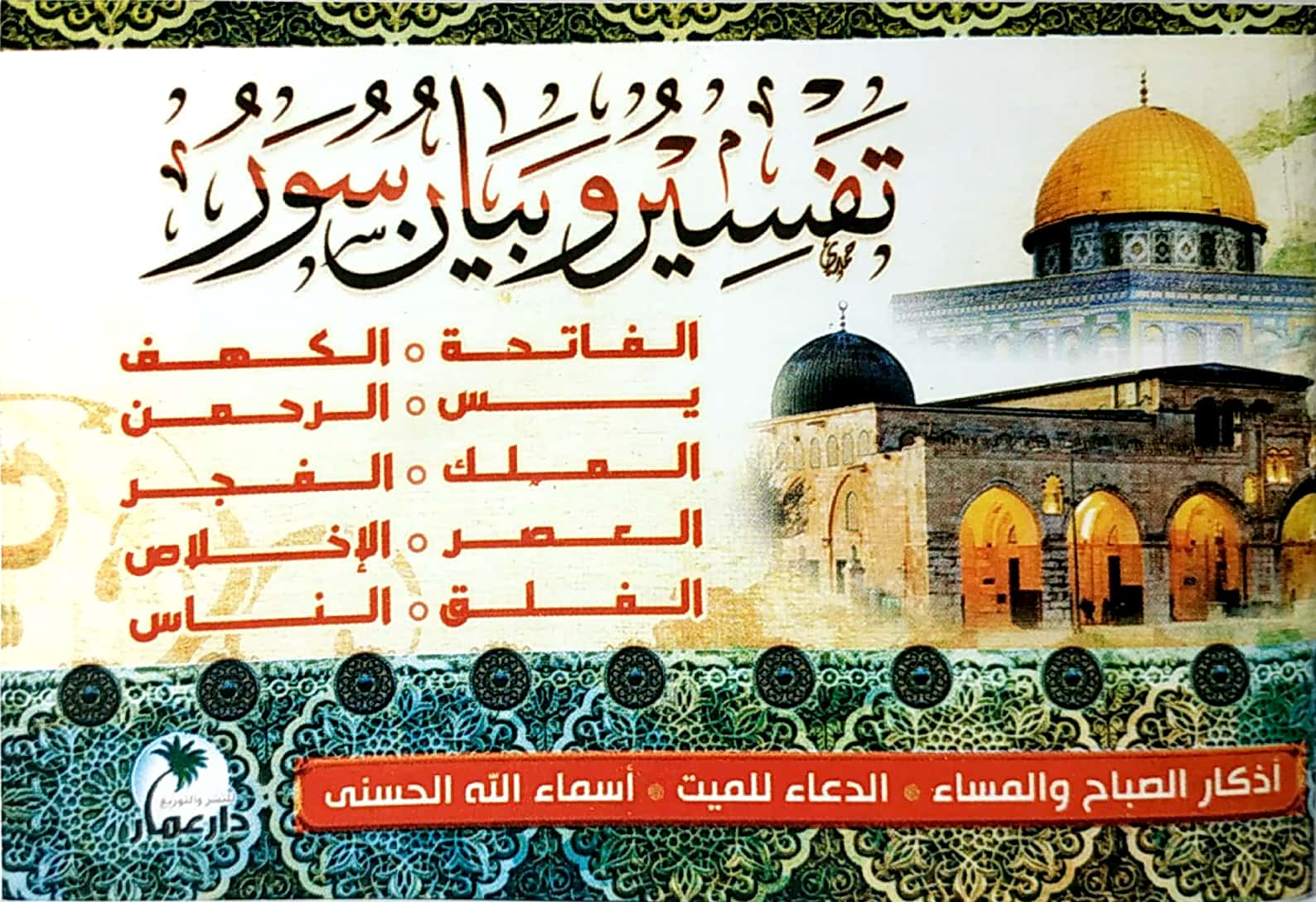 تفسير وبيان سور • أذكار الصباح والمساء • الدعاء للميت • أسماء الله الحسنى • دار عمار • كتيب 8×12