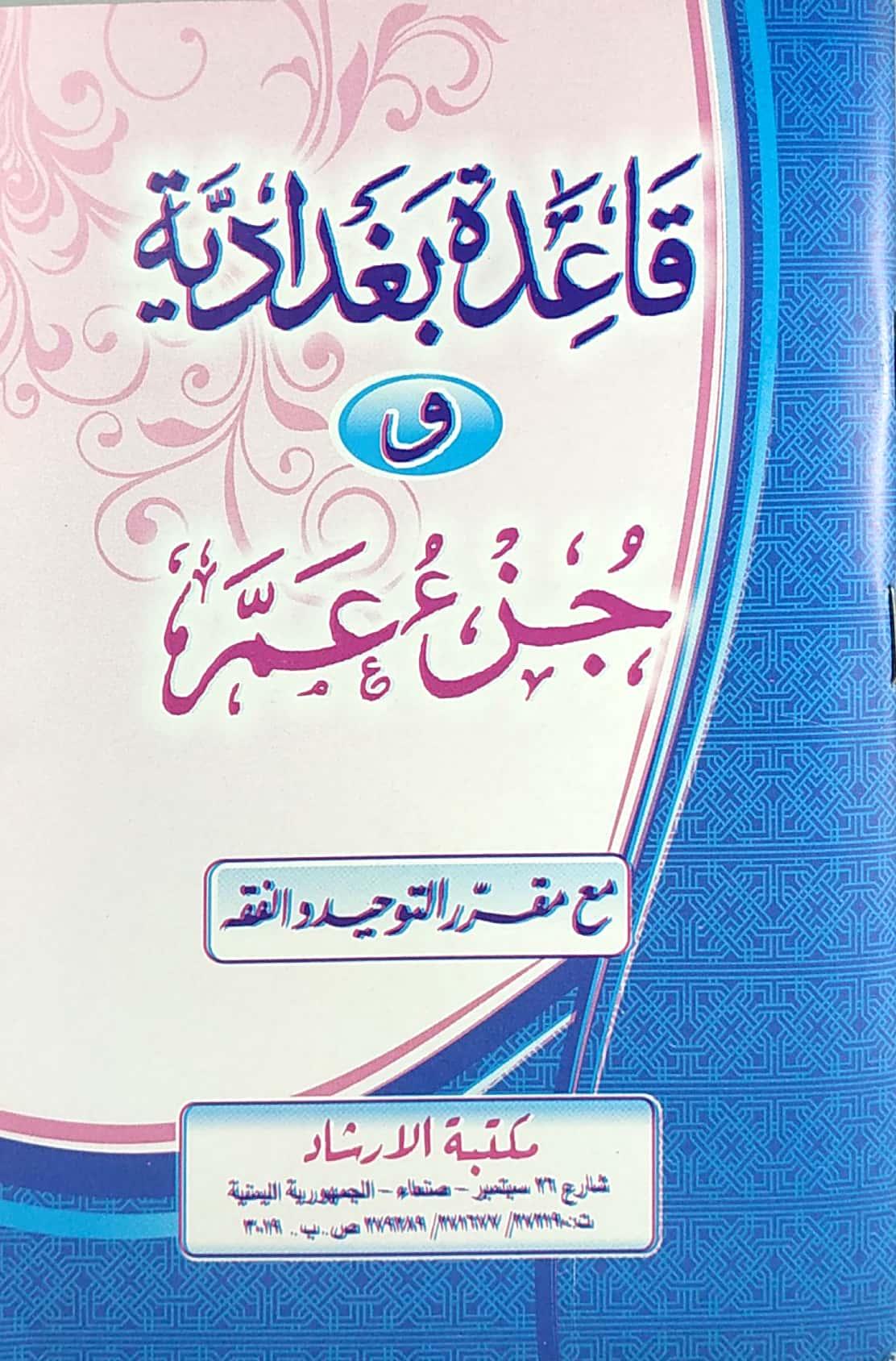 القاعدة البغدادية وجزء عم مع مقرر التوحيد والفقه • ورق شامواه • لونان • مكتبة الإرشاد
